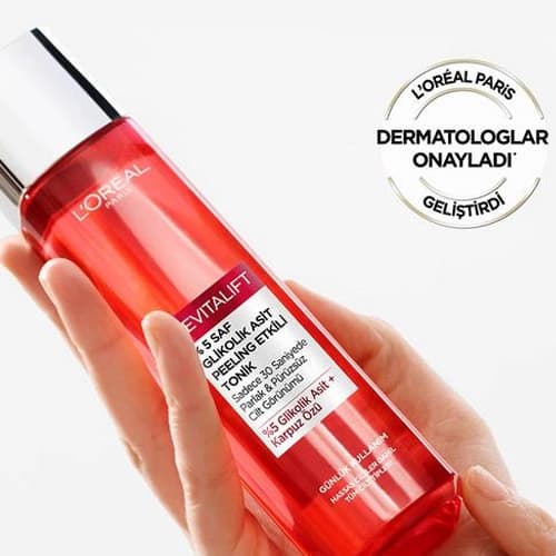 تونر لایه بردار و درخشان کننده لورآل سری Revitalift حاوی ۵% گلیکولیک اسید مناسب انواع پوست با حجمی معادل ۱۸۰ میل یک تونر درخشان کننده و لایه بردار فوق العاده قدرتمند است که با ترکیبات حاوی گلیکولیک اسید ۵% طراوت و تازگی را به پوست شما هدیه میدهد. این محصول با لایه برداری ملایم و از بین بردن سلولهای مرده سطح پوست، به رفع لکها، تیرگی و کدری صورت کمک شایانی میکند. این تونر لورآل با تنظیم PH پوست و بهبود کیفیت بافت پوستی، به جذب بهتر و سریعتر سایر محصولات مراقبتی و تقویت کننده پوست کمک میکند. محصول فوق با لایه برداری موثر و حذف سلولهای مرده، ضمن رطوبت رسانی به پوست به مرور لکههای پوستی و جای جوش را کمرنگ کرده و به ترمیم و بازسازی بافت پوستی کمک میکند. همچنین منافذ پوستی را از باقیمانده مواد آرایشی و ناخالصیهای دیگر پاکسازی کرده و ظاهری درخشان و شادابی به چهره شما خواهد بخشید.