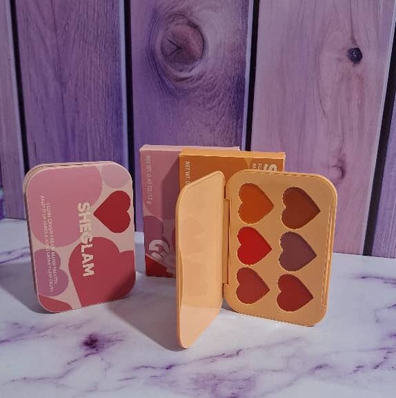 پالت 6 رنگ رژگونه کرمی شیگلم Sheglam (صورتی) شامل شش رژ گونه کرمی به شکل قلب است که جلوهای جذاب و طبیعی به آرایش شما میبخشد.
